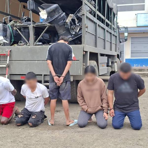 La Policía detalló que dos de los aprehendidos registran antecedentes por robo, tenencia de armas y tráfico de drogas, y que además estarían vinculados con casos de extorsión a pescadores de la zona.