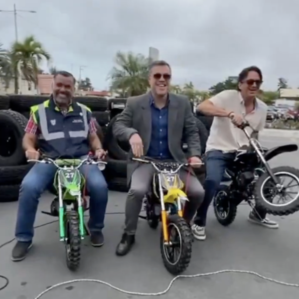 Posteriormente, tanto Castillo y Negrete se subieron a las mini motos para tomarse una fotografía.