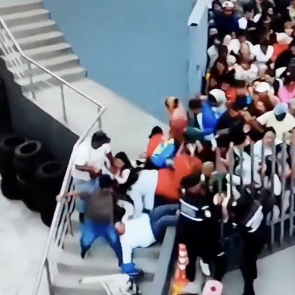 Esto causó indignación. La multitud se abalanzó sobre la reja y la tumbó sin que los guardias pudieran contener a la ola de gente. Posteriormente, los ciudadanos corrieron para lograr los primeros puestos de la fila.