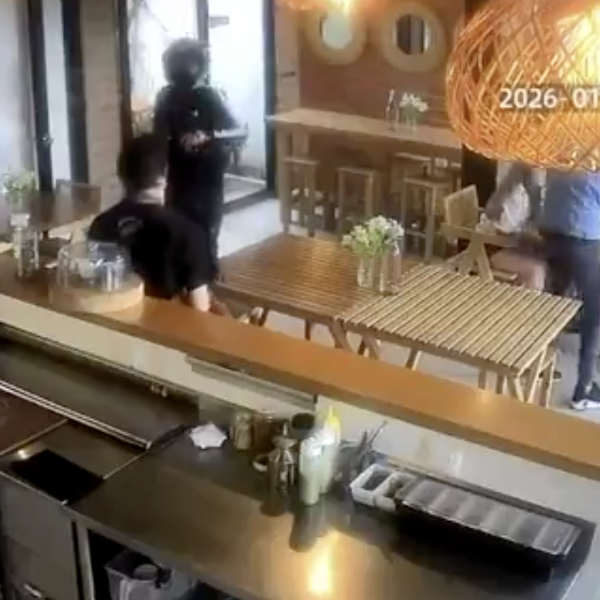 Se trató de un asalto perpetrado a la 13:49 del pasado miércoles 7 de enero. La cámara de seguridad del local captó que tres sujetos con cascos de motocicleta ingresaron a la cafetería y amedrentaron a clientes y personal del lugar.