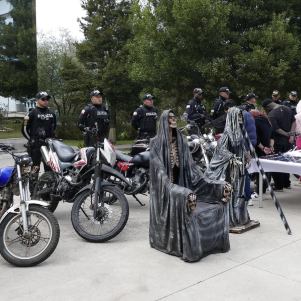 La Policía Nacional ejecutó un operativo en el norte de Quito para desarticular estructuras criminales. Como resultado, 10 personas quedaron detenidas y se incautaron varios indicios como dos gigantescas esculturas de la ‘Santa Muerte’, una deidad asociada a los grupos delictivos.