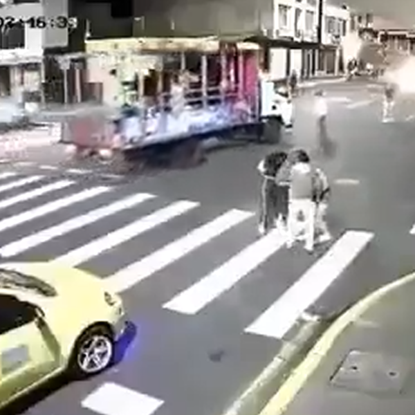 Un video captado la noche de este lunes por una cámara de vigilancia en la avenida Cevallos, en la ciudad de Ambato, captó el momento en el que un vehículo pesado atropelló a dos personas.