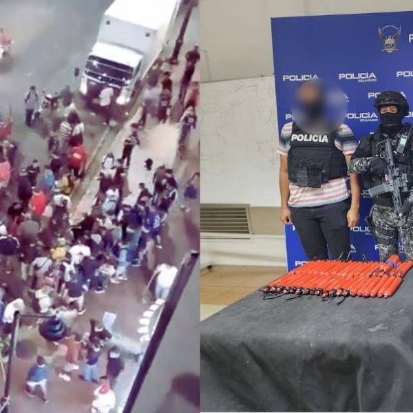De manera paralela, la Policía Nacional informó sobre la aprehensión de una ciudadana presuntamente vinculada con la tenencia de tacos de dinamita. El procedimiento se ejecutó tras una alerta recibida sobre la presencia de artefactos explosivos en el estacionamiento del centro comercial Riocentro Norte, ubicado en la avenida Francisco de Orellana y Guillermo Pareja, en el distrito Florida.