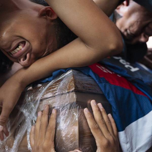 La imagen, captada por el lente del guayaquileño, colaborador de agencias internacionales retrata el funeral masivo de cuatro niños afroecuatorianos, de entre 11 y 15 años, quienes fueron torturados y asesinados en el sector de Las Malvinas tras desaparecer después de un entrenamiento de fútbol.