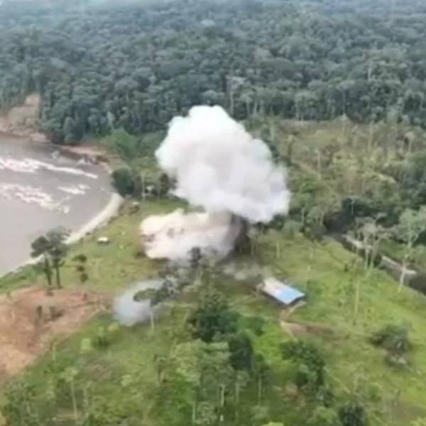 “Los encontraremos. Donde sea que se escondan, ahí estaremos. Nuestras fronteras no serán las bases del narcotráfico”, declaró Noboa en un video difundido en Instagram, en el que se aprecia como el campamento ilegal, situado en medio de una zona selvática, al costado de un río, es destruido con explosivos.