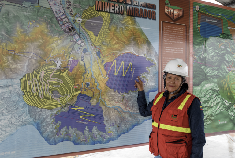 Es la primera mina a cielo abierto en Ecuador, que firmó contrato con el estado ecuatoriano en 2012, empezó a producir en 2019 y tiene una vida útil de 30 años. Está asentada sobre la Cordillera del Cóndor, en la provincia amazónica de Zamora Chinchipe, una zona de alta biodiversidad.