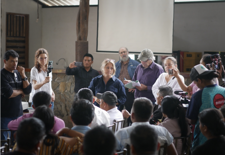 "Yo no vengo a contar nada, compañeros. Yo vengo aquí a dar testimonio de lo que está pasando en el territorio", gritó Sánchez al micrófono. Unas docenas de personas estaban en el salón del evento en las afueras de la ciudad. Indígenas de Zamora Chinchipe y Morona Santiago respaldan su lucha, pero no son todos. Los pueblos han quedado divididos entre quienes respaldan la minera y quienes se oponen.