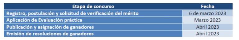 El concurso iniciará bajo el siguiente cronograma:
