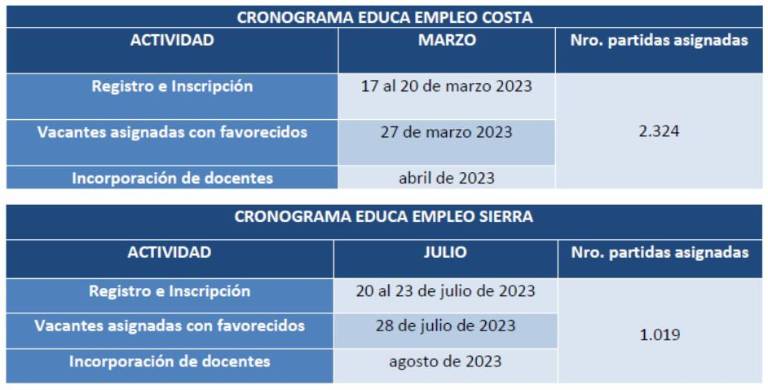 El cronograma establecido para el proceso de Educa Empleo es el siguiente: