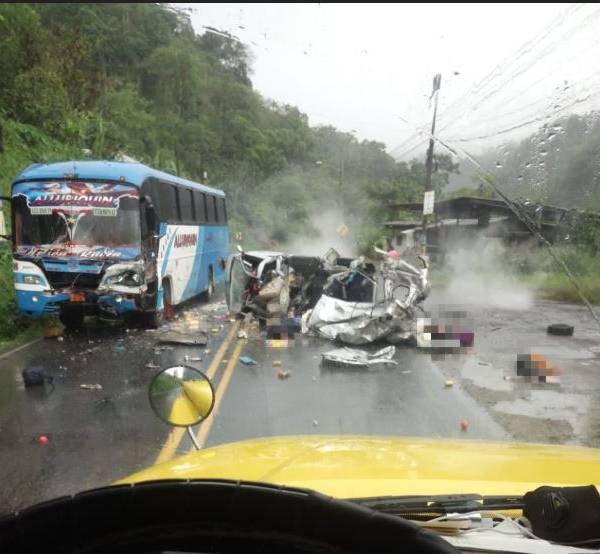 El accidente ocurrió entre una furgoneta y un bus interparroquial en el kilometro 78 de la vía, sector dos puentes de la parroquia Alluriquín.