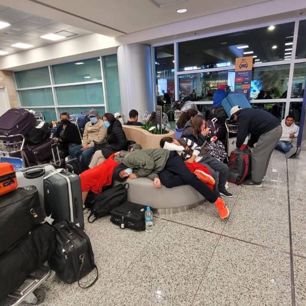 El vocero de Quiport, operadora del Aeropuerto, Luis Galárraga, ha indicado que habilitaron espacios para que los viajeros que no pudieron salir del aeropuerto puedan pasar la noche en las salas de pre embarque y en el comedor de empleados.