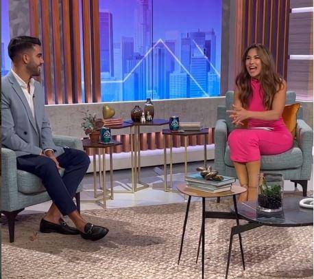 En las imágenes, Alejandra aparece con un vestido fucsia entallado compartiendo pantalla con Carlos Adyan, presentador de En Casa con Telemundo.
