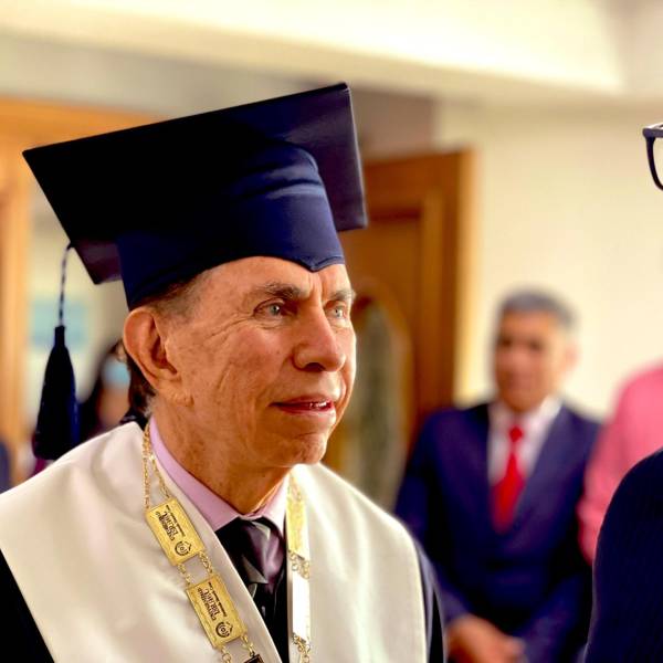 Pablo Beltrán, presidente del Consejo de Educación Superior, acompañó a Espinoza de los Monteros en la entrega del título, la cual se llevó a cabo en las instalaciones de la Universidad de Israel.