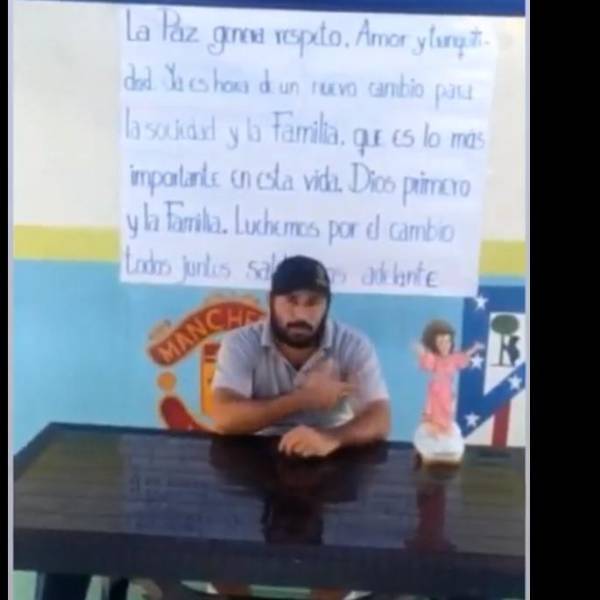 "Estoy aquí dando la cara para hacerles entender algo y que quede claro, que yo soy una persona de bien, una persona de hogar, tengo a mi familia, soy devoto a Dios. Este obsequio que tengo aquí (el Niño Divino) me lo regaló mi hija, la que secuestraron. Gracias a Dios y a las personas que han entendido, que la tenían, me la han devuelto. Gracias a Dios, con vida", manifestó el privado de la libertad (ppl) en su mensaje dirigido a la ciudadanía en general.