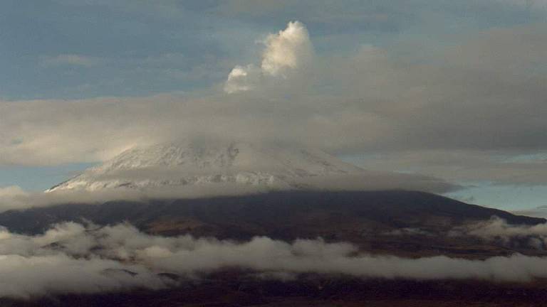 Esta mañana el Cotopaxi presentó una emisión principalmente de gases y vapor de agua con una columna que alcanza los mil metros de altura y que por los vientos se dirige hacia el occidente.