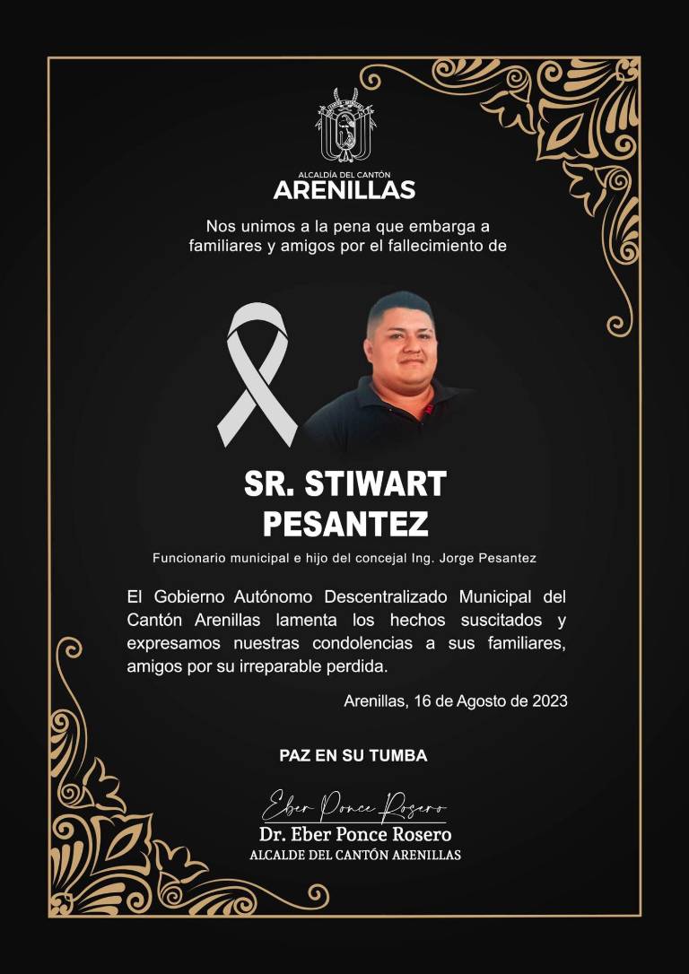Por su parte, la Alcaldía de Arenillas emitió una nota de pesar y lamentó los hechos suscitados. "Expresamos nuestras condolencias a sus familiares y amigos por su irreparable perdida".