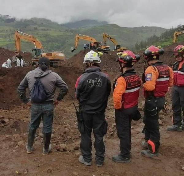 En las labores de rescate participan actualmente 102 bomberos, 97 militares y 69 policías, mientras que también hay una quincena de representantes de la Cruz Roja Ecuatoriana y decenas de delegados de instituciones estatales para brindar apoyo a las víctimas.