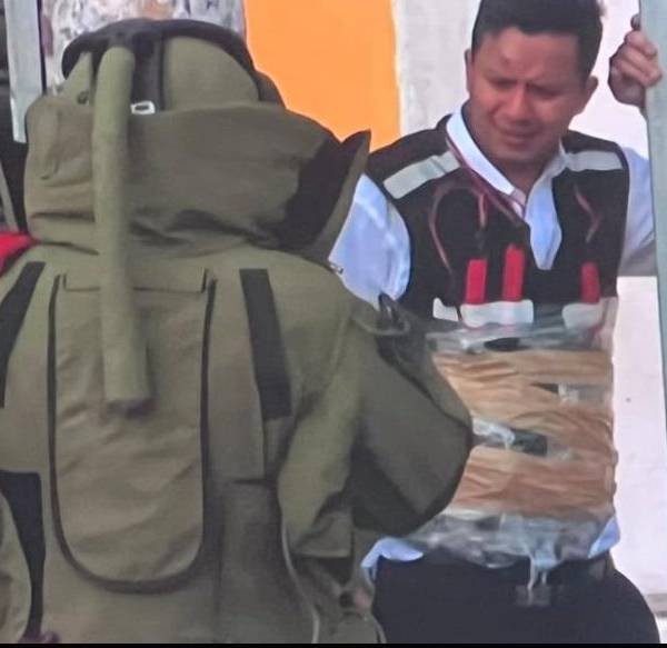 Las imágenes causaron terror a tempranas horas de la mañana de este jueves 30 de marzo de 2023 y mantuvieron en vilo, alrededor de tres horas, a la ciudadanía, hasta que finalmente agentes especializados de la Policía Nacional lograron retirar el chaleco con explosivos y poner a buen recaudo a la víctima.