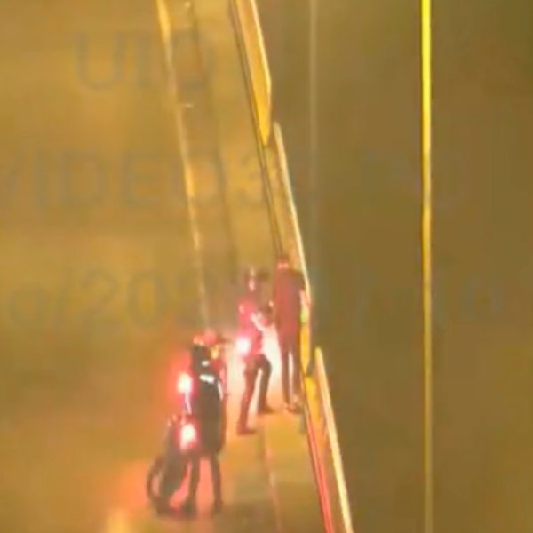 Uno de ellos, agarró a la víctima por la espalda y tras un breve forcejeo, lo alejó del filo del puente. Segundos después, el otro agente se acercó y juntos dialogaron con el hombre.