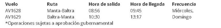 Desde el próximo 2 de julio, la aerolínea colombiana Avianca se convierte en la primera aerolínea en conectar vía aérea las provincias de Manabí y Galápagos.