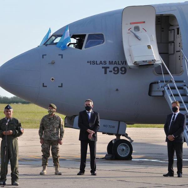 El avión, un Boeing 737-700, ha sido bautizado como Islas Malvinas, tiene la matrícula militar T-99 y está asignado a la Línea Aérea del Estado (LADE).