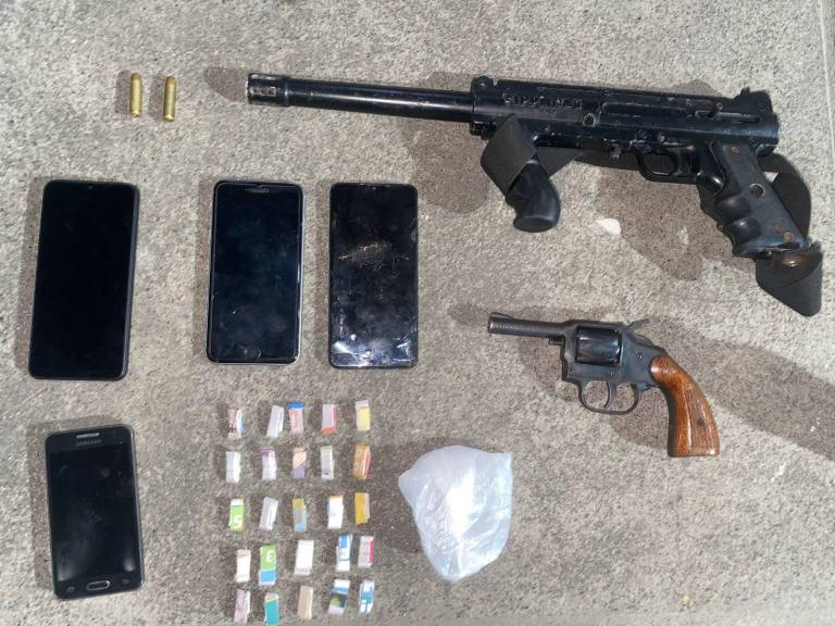 También se incautó un revólver, 1 mini uzi, 1 tricimoto, cartuchos y droga.