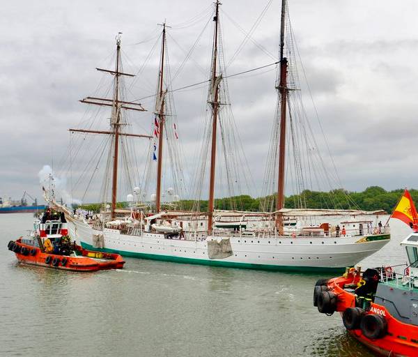 Bajo estrictas medidas de seguridad sanitaria y sin que ningún mando descendiera a puerto, el buque escuela de la Armada española Juan Sebastián Elcano atracó este sábado en el puerto de Guayaquil, en medio de una bienvenida con salvas de artillería.