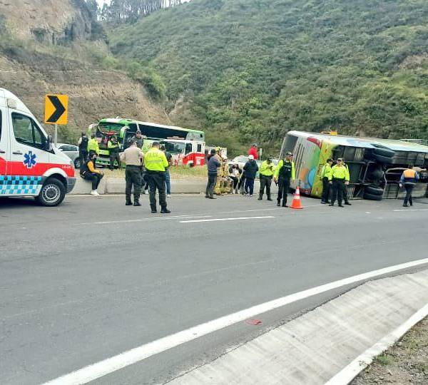 A las 09h45 de la mañana del sábado 8 de octubre, un bus de turismo sufrió un accidente de tránsito en la carretera E-35, a la altura de la provincia de Carchi. De hecho, el automotor recién estaba por llegar a su destino porque cubría la ruta desde Guayaquil hasta Tulcán, cuando sufrió el volcamiento.