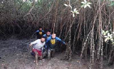 Los buzos del GOE, con la información recogida ingresaron la embarcación a las aguas oscuras del Estero Salado y como resultado de un recorrido por el sector, encontraron un cuerpo entre una palizada, donde había sido arrastrado por la baja marea.