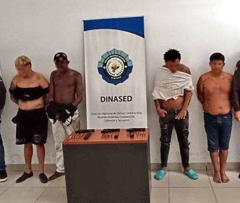 La investigación policial llevó a las autoridades hasta un domicilio ubicado en las calles 54 A y 3er Pasaje 11 K, donde tres individuos fueron aprehendidos en flagrancia mientras intentaban huir precipitadamente. Los detenidos fueron identificados como Jean A., Carlos, Anselmo V. Jair y Luis R., a quienes se les incautaron tres armas de fuego.