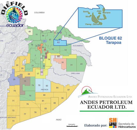 Según el informe de monitoreo, Andes Petroleum opera 14 pozos y es responsable del 22 por ciento de la producción en 2023. Participa en el holding que conforma el OCP. “Entre 2014 y 2016 la empresa ejecuta varias actividades de exploración del sector oeste del bloque Tarapoa (WBT) y la construcción de seis plataformas, vías de acceso y la perforación de 18 pozos exploratorios”.