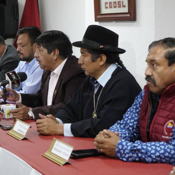 En una rueda de prensa, realizada este lunes 12 de septiembre, liderada por el presidente del gremio, Ángel Sánchez, el legislador de Pachakutik, Salvador Quishpe, y otros dirigentes sindicales, se analizó la situación del proyecto del Código Orgánico de Trabajo presentado en la Asamblea Nacional, la crisis en el Instituto de Seguridad Social (IESS) y el llamado a las medidas de hecho.