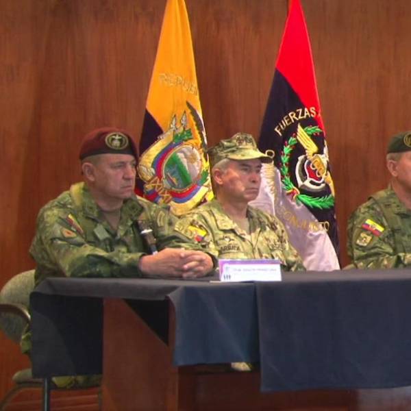 Mediante un rueda de prensa, la cúpula de las FF.AA. denunció los hechos violentos ocurridos en Sucumbíos, cuando un centenar de manifestantes atacó un convoy resguardado por militares y policías, la madrugada de este martes 28 de junio de 2022.
