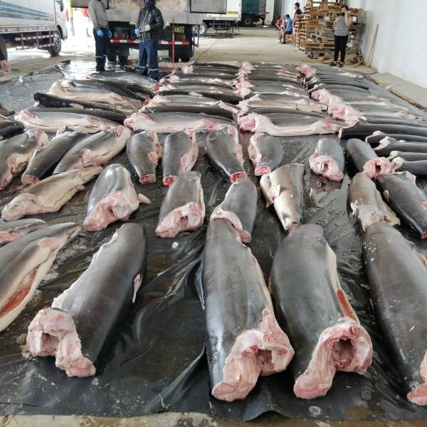 Durante la inspección a una serie de cámaras refrigeradoras se halló un lote con los tiburones, de los que solo quedaba el tronco, pues ya les habían extraído las aletas.