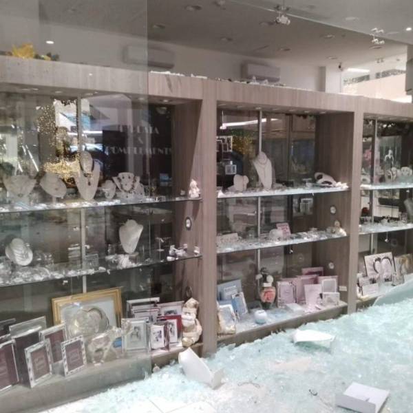 Según datos preliminares, los sujetos sometieron a los guardias e irrumpieron en varias tiendas, incluida una joyería y una relojería de alta gama.