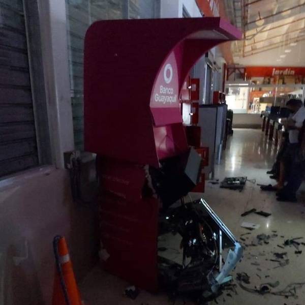 La última explosión se registró en Yaguachi, cantón de la provincia del Guayas. La imagen del cajero destruido fue difundida este 14 de julio y en ella se evidencia que la parte delantera del mismo está completamente arruinada. La pantalla y el panel de control se ven sujetos a la máquina solo por cables, pero la zona donde se almacena el dinero ya no está. A los alrededores también hay piezas y parte del aparto que se dispersaron tras la explosión.