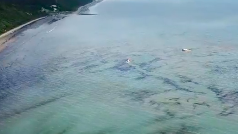 En videos de redes sociales se observa gran cantidad de hidrocarburos regados en la arena y también en el mar.
