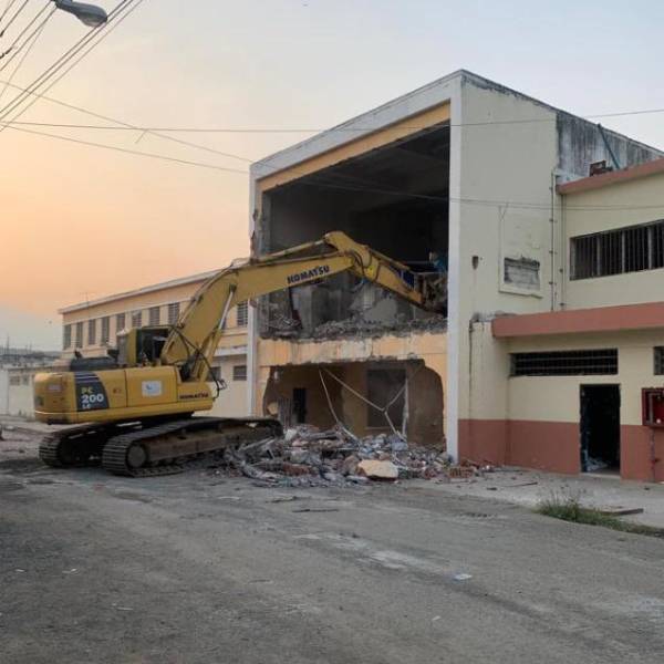 Con maquinaria pesada fue destruida una edificación dentro de la Penitenciaría del Litoral en Guayaquil, la mañana de este martes 8 de noviembre de 2022.