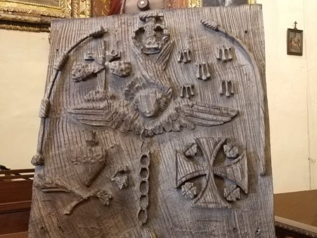 El escudo de cantuña estuvo escondido por años en uno de los campanarios.