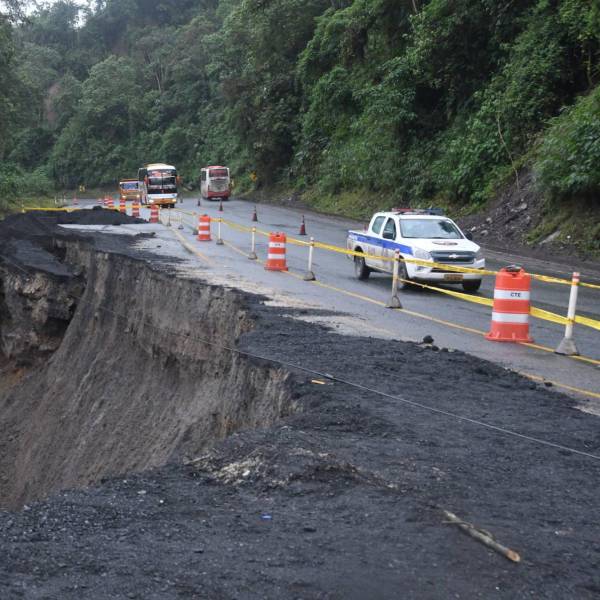 La vía Alóag-Santo Domingo está parcialmente habilitada, luego de un hundimiento que fue informado el domingo 27 de febrero en el kilómetro 38 de la carretera.