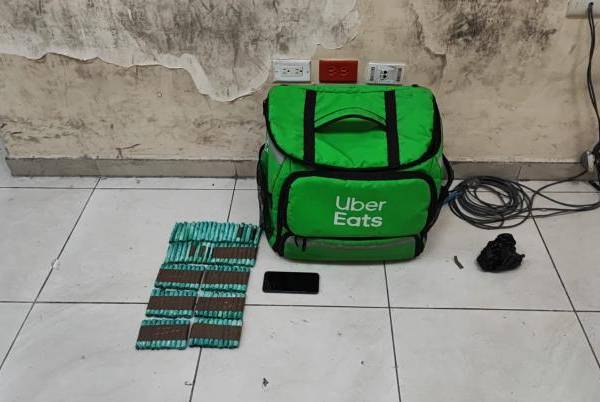 En Guayaquil, un motociclista y su acompañante fueron detenidos después de que la Policía hallara droga en una mochila que llevaban consigo, la cual tenía un logotipo de un app de entregas a domicilio.