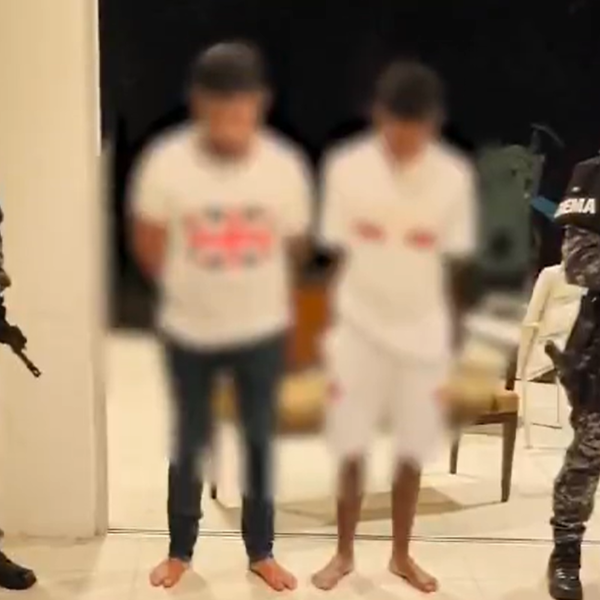 Una imagen de los detenidos también fue publicada. Estos aparecen esposados, con una vestimenta casual, de pie en medio de la sala del inmueble, bajo custodia de los uniformados.