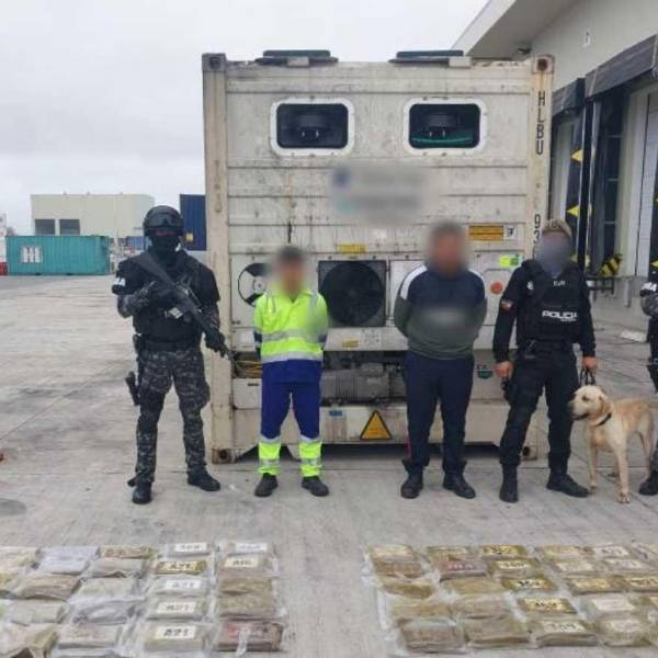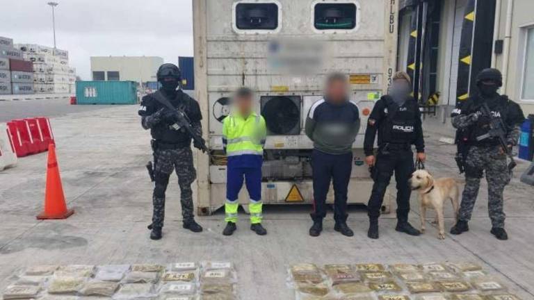 Dos personas fueron aprehendidas con 60 paquetes de cocaína ocultos en un contenedor en Guayaquil. Luego de la inspección policial, los uniformados incautaron la droga que estaba escondida en productos de exportación. En total se descubrió más de 59 kilos de cocaína, que representan 591 mil dosis.
