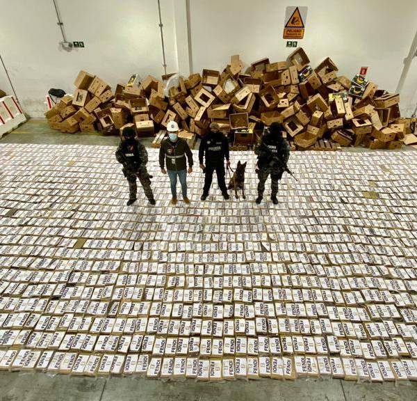 Agentes de las unidades especializadas de la Dirección Nacional de Investigación Antidrogas de la Policía Nacional del Ecuador incautaron 1 tonelada 998 kilos de cocaína, es decir, alrededor de 20 millones de dosis.