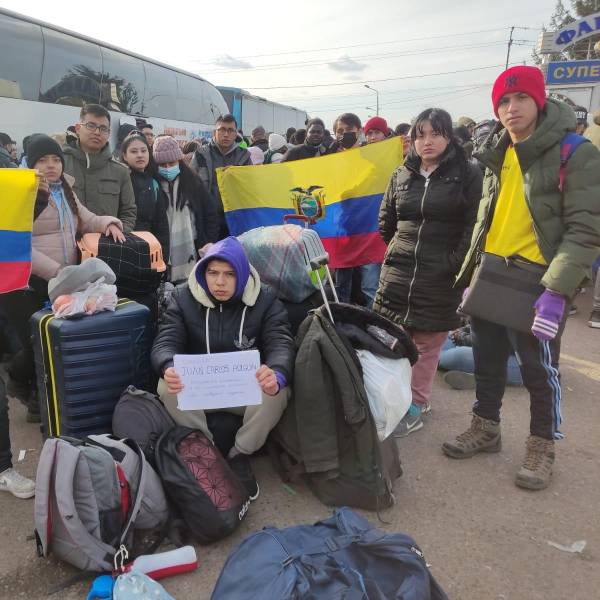 En teoría, miembros de Cancillería ecuatoriana estarían en este punto para hacerse cargo del traslado del grupo hacia Polonia. En la práctica, la cantidad de personas pugnando por tomar un tren para salir a Polonia habría dificultado el encuentro con el personal de Cancillería.