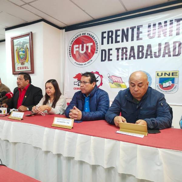 Así lo confirmaron este lunes 29 de agosto de 2022, los representantes de la UNE, Cedocut, Fenogopre, entre otras, que componen el FUT. Ellos manifestaron su preocupación por la deuda que el Gobierno tiene con el IESS y piden que se establezca un plan de pagos.