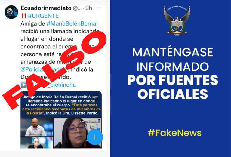 Sin embargo, esta versión fue calificada como falsa por parte de la institución policial, que en su cuenta de Twitter apuntó "no seas parte de las #FakeNews (noticias falsas), infórmate a través de cuentas oficiales", al adjuntar una captura con las declaraciones de Pardo.
