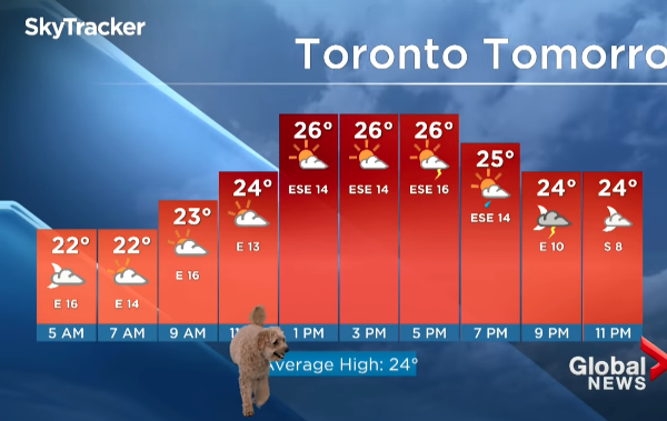 "El viernes pasado, Storm, hambriento de golosinas, invadió el plató en medio del informe meteorológico de Anthony, exigiendo golosinas incluso cuando Farnell les explicaba a los habitantes de Ontario qué tiempo haría ese fin de semana y exponía los peligros originados por el huracán Ida más al sur. Ambos profesionales consumados, Anthony terminó su segmento sin problemas mientras Storm saciaba su hambre (y acaparó un poco la cámara). ¡Todo en un día de trabajo!", bromearon desde la cadena de televisión.