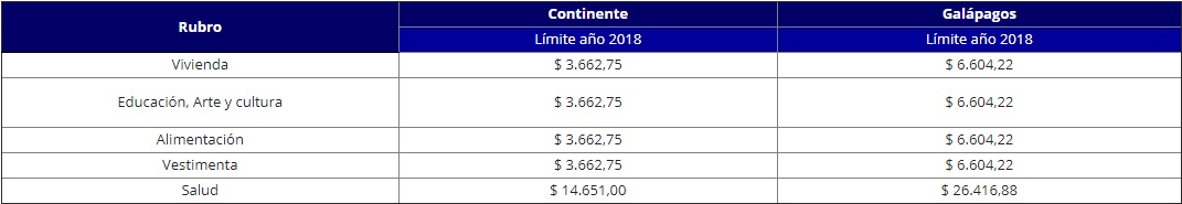 El documento recoge una proyección de los gastos que se realizarán durante este año en vivienda, educación, arte y cultura, vestimenta, alimentación y salud, que le permitirán al contribuyente deducir hasta el 50% del total de sus ingresos, siempre y cuando no se supere el límite deducible de este año: USD 14.651 para los residentes de provincias en el continente y USD 26.416,88 para los residentes de Galápagos.