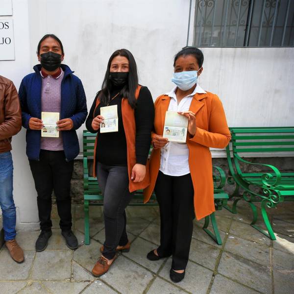 España entregó este jueves los primeros visados temporales a cuatro jornaleros ecuatorianos, dos hombres y dos mujeres, que trabajarán en la recolección del fruto rojo en la provincia andaluza de Huelva (sur) dentro de un plan de migración circular vigente entre los dos países.